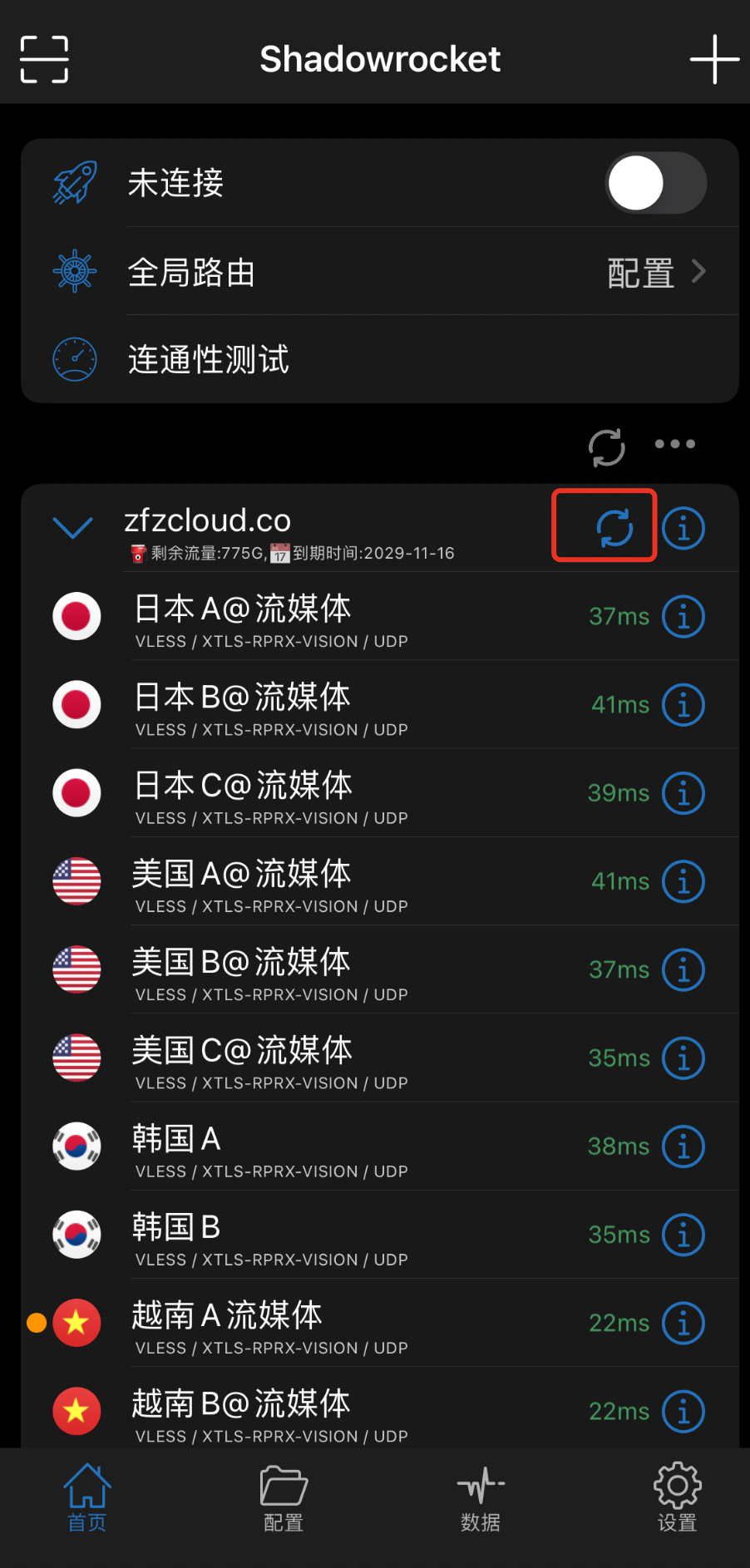 ios 更新订阅节点.点击刷新按钮, 如果提示更新失败也可以删除订阅组重新添加订阅url