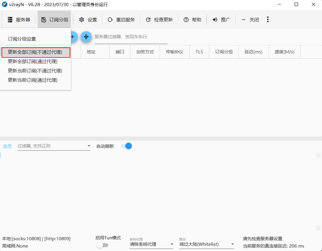 windows 更新订阅节点. 点击更新全部订阅(不通过代理)